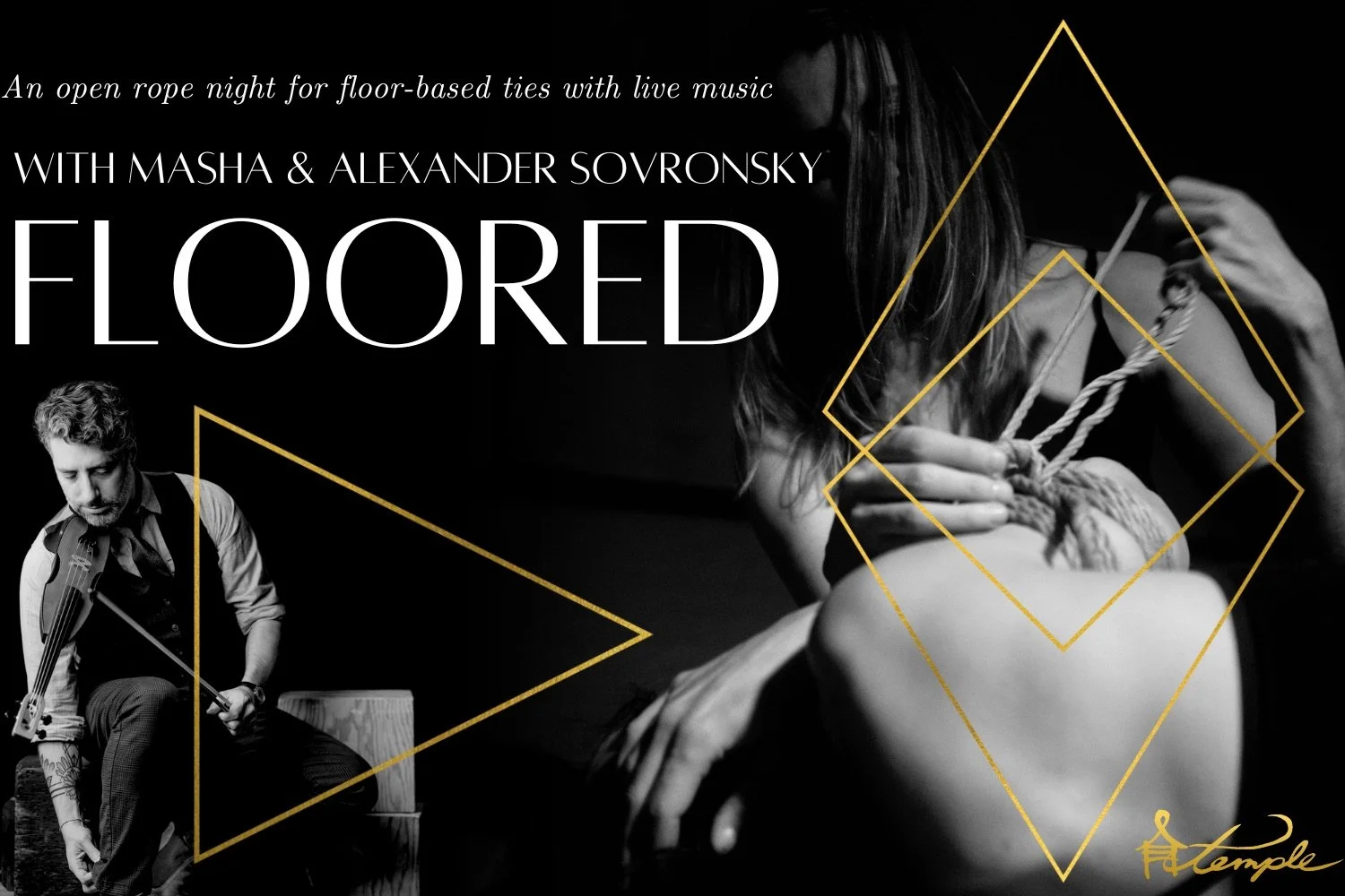 Floored is a sonic rope jam for people interested in working on their floor game. No suspension, no hard points, but rather, an invitation to be carried away by the sound of live improvisational music. All skill levels are welcome, come partnered or solo. Come to tie or just to watch. Some rope is available to borrow, but bring your own if you can. This unstructured but supervised peer rope event will be hosted by Masha and the multi-instrumentalist Alexander Sovronsky.
